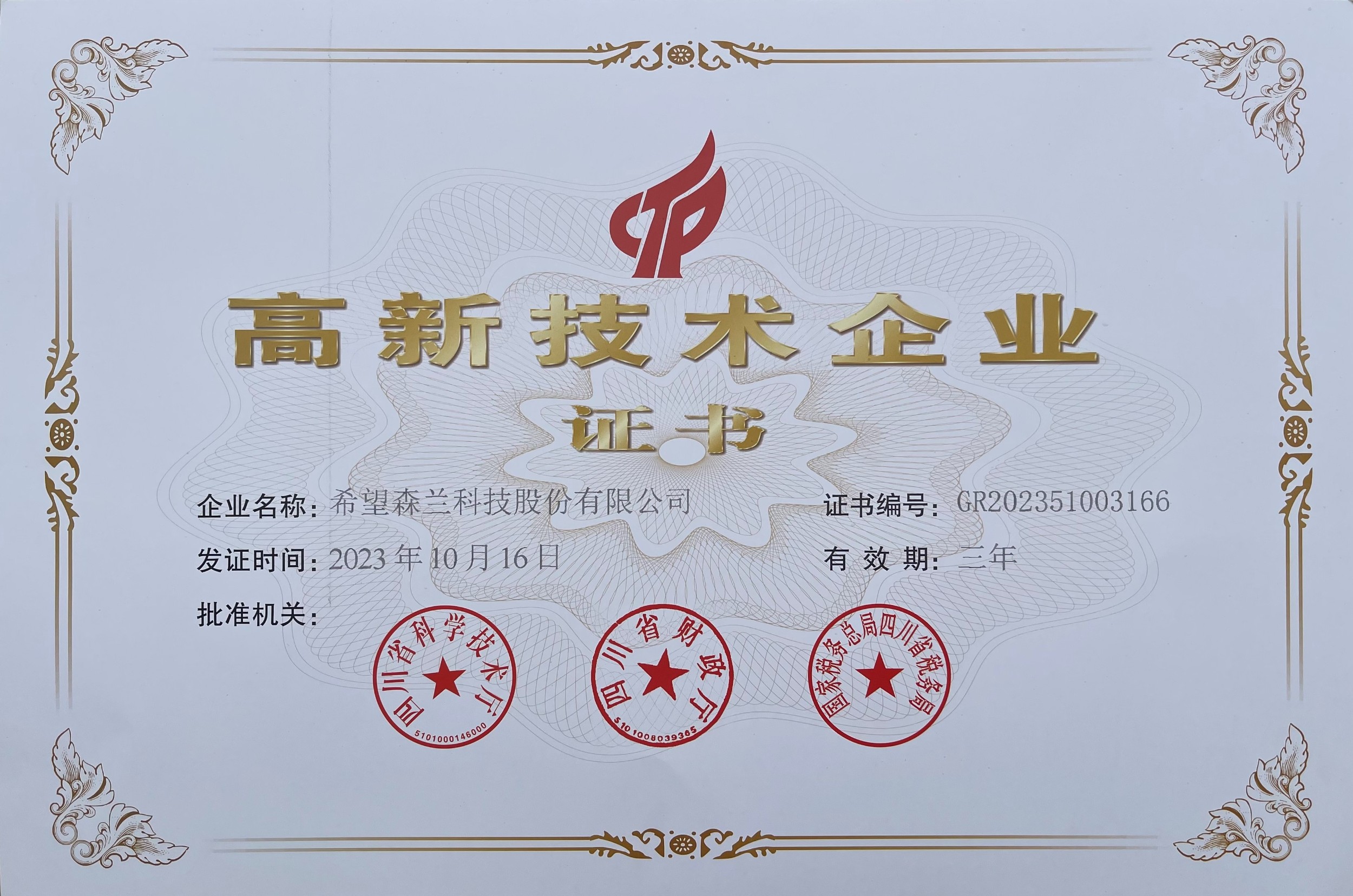 高新技術證書