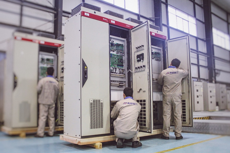 本套岸電系統在碼頭前沿的電纜接電箱和電纜卷盤車的設計上都運用了國內首創的防爆型設計,防爆等級為IIBT4,實際大部分設備防爆等級達到了IIBT6,符合GB3836.1-2000《爆炸性氣體環境用電氣設備 第1部分:通用標準》要求,較傳統岸電系統更加安全可靠,符合危化碼頭接岸電需求。本系統核心部分變頻電源為2套森蘭SB70P系列變頻電源,單臺容量1MVA,采成直流共母排方案。SB70P系列低壓岸電變頻電源基于森蘭22年成熟低壓平臺技術的基礎上,針對岸電電源應用需求特點定制開發的新一代高性能變頻電源,具有動態響應快,過載能力強,控制精度高等優點,無論是系統拓撲結構選擇,控制性能,還是散熱系統設計,都首屈一指。具有以下特點: