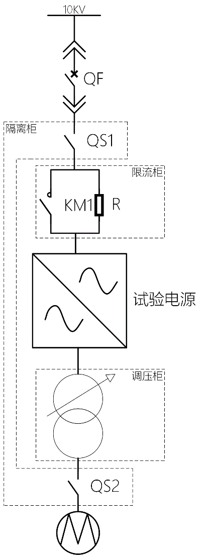 1)將高壓變頻試驗電源串聯在用戶現場的10KV與高壓電機之間即可。試驗電源的所有部件采用內部連線,用戶只須連接380V/6KV/10KV輸入、高壓輸出、AC220V控制電源和控制信號線即可,方便快捷,操作簡單;