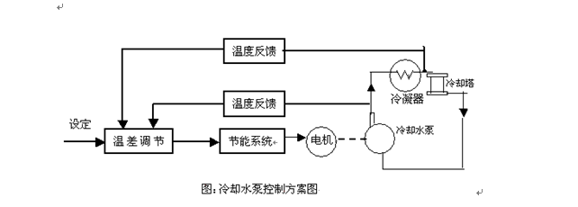 根據以上分析(以冷卻泵進行分析說明):由于冷卻塔的水溫是隨環境溫度而變的,其單側水溫度不能準確地反映冷凍機組內產生熱量的多少。所以,對于冷卻泵,以進水和回水之間的溫差作為控制依據,來實現進水和回水的恒溫差控制。