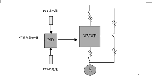 ●恒溫差控制器,用于對Pt1和Pt2測得的溫度信號進行轉換、放大、求差,再進行PID恒溫差運算處理后,得出0—10V模擬信號,輸出,作為變頻器的頻率給定信號。如下圖:
