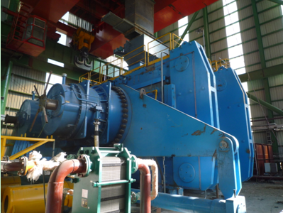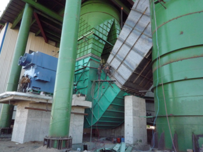 另一個是流量達到2000000 m3/h ,全壓達到5900 pa ,功率為5000KW的系統(tǒng)風(fēng)機。而我們森蘭高壓變頻器改造的就是這臺系統(tǒng)風(fēng)機,變頻器型號為SBH-100-5600。經(jīng)過打散粉碎后的物料在擋料錐的導(dǎo)向作用下通過擋料錐外圍的環(huán)形通道進入在風(fēng)輪向分布的風(fēng)力分選區(qū)內(nèi)。物料的分級中的粗顆粒物料由于其運動慣性大,在通過風(fēng)力分選區(qū)的沉降過程中,運動狀態(tài)改變較小而落入內(nèi)錐筒體被收集,由粗粉卸料口卸出返回,同配料系統(tǒng)的新鮮物料一起進入輥磨機上方的稱重倉。細粉由于其運動慣性小,在通過風(fēng)力分選區(qū)的沉降過程中,運動狀態(tài)改變較大而產(chǎn)生較大的偏移,落人內(nèi)錐簡體與外錐筒體之間被收集。
