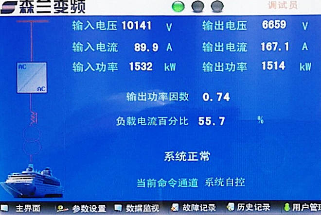 經(jīng)過檢查船上連接安全回路,一切準(zhǔn)備就緒。隨著連船總指揮一聲指令,希望森蘭VFPS系列岸電電源系統(tǒng)進(jìn)入一鍵啟動(dòng)程序。