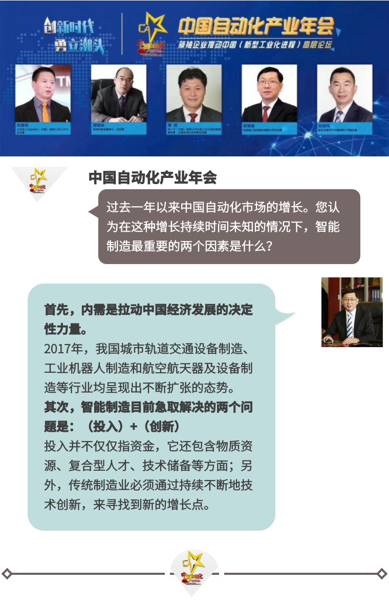 針對過去一年以來中國自動化市場的增長的原因、持續(xù)時間,以及智能制造的組成因素等問題,論壇主持人對中國自動化產(chǎn)業(yè)的領(lǐng)袖企業(yè)高層進(jìn)行了逐一采訪。